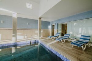 Sur demande, vous pouvez profiter d’une séance de massage ou d’un moment bien-être au Hammam et d’une grande piscine chauffée pour nager et vous détendre en toute saison. Une salle de sport équipée est également à votre disposition sur demande.